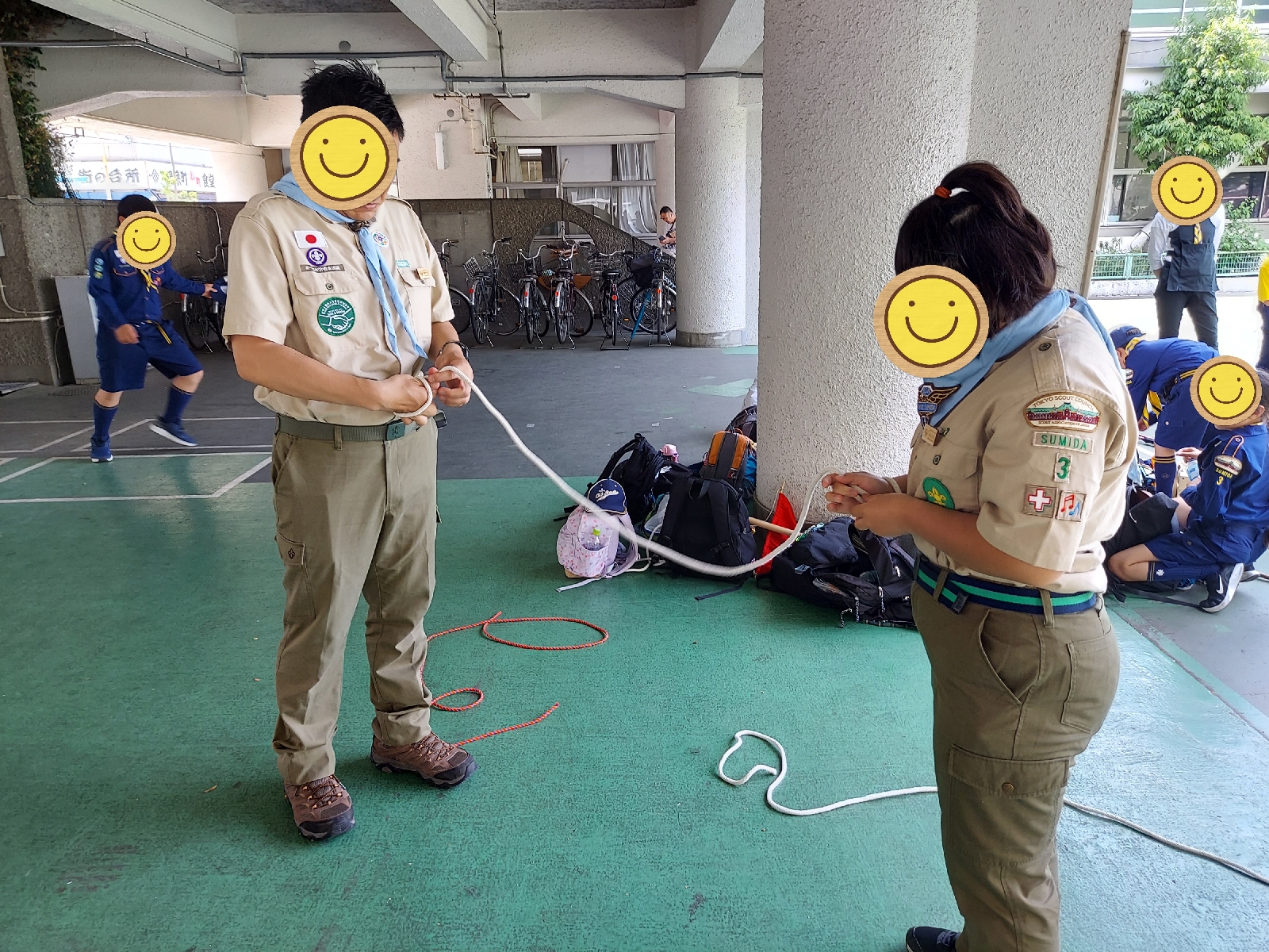 モルックをしてない組は、先週に続き奉仕に来てくれた頼もしいデンコーチにロープワークを教わりながら特訓です。
